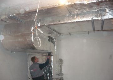 Montaż instalacji wentylacyjnej. Podczas montażu zastosowana zabezpieczenia P-PPŻ firmy HILTI.