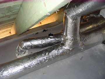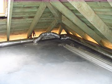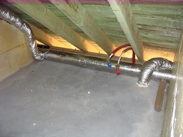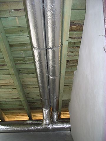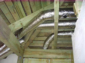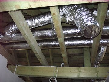 Montaż instalacji wentylacyjnej opratej na systmie rur spiro. Instalcja została zabezpieczona przed zabrudzeniem po zakończeniu prac.