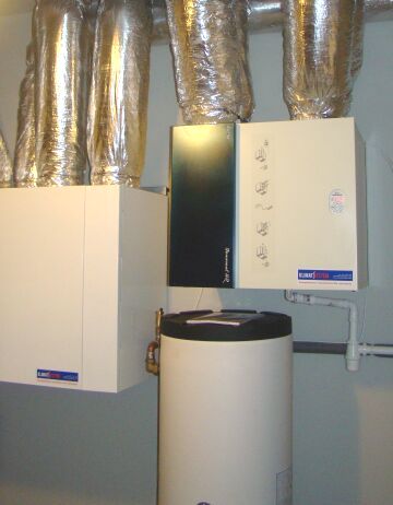 Montaż instalacji wentylacyjnej z odzyskiem ciepła i wilgoci oparty na dwóch centralach wentylacyjnych.