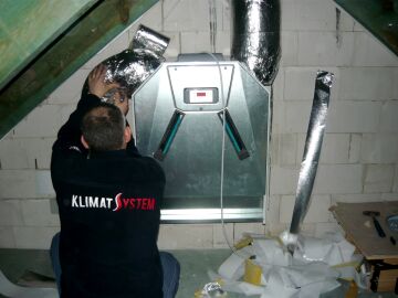 Cała instalacja wykonana w systemie rur sztywnych SPIRO, po zakończeniu montażu została wyregulowana w celu uzyskania